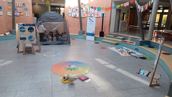 Das Zelt war Teil der interaktiven Wanderausstellung „Klima Kinder – Coole Köpfe gegen heiße Erde“, die in der Woche vom 20.10. bis 30.10. an der Platanenschule ihren Einsatz hatte.